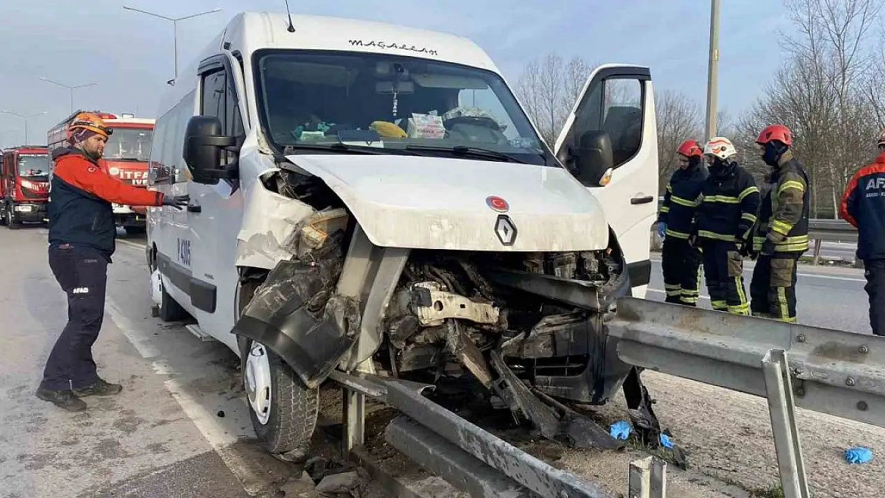 Kocaeli'nin Kartepe ilçesinde servis aracının bariyerlere çarpması neticesinde meydana gelen kazada bacağı kopan sürücü ağır yaralandı.