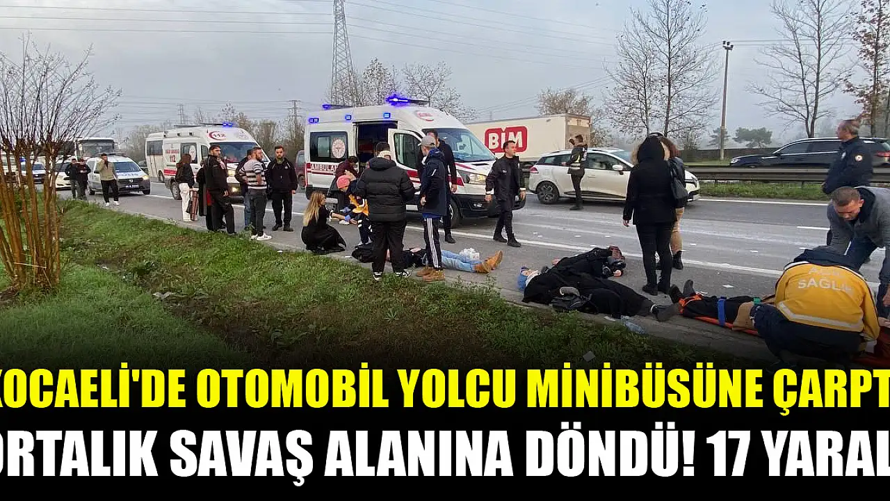 Kocaeli'de otomobil yolcu minibüsüne çarptı, ortalık savaş alanına döndü! 17 yaralı