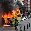 Kocaeli'de sürücünün 6 yolcuyu indirmesinin ardından, hareket halindeyken yanmaya başlayan yolcu midibüsü kullanılamaz hale geldi.