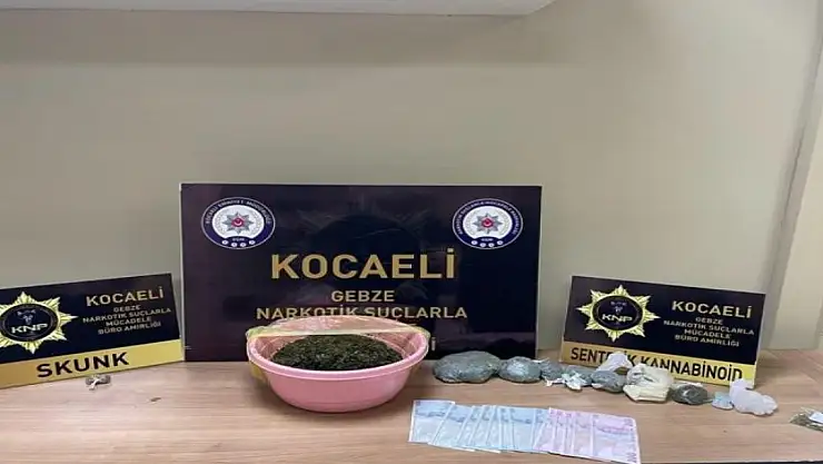 Edinilen bilgiye göre, İl Emniyet Müdürlüğü Narkotik Suçlarla Mücadele Şube Müdürlüğü ekipleri uyuşturucu madde kullanımı ve ticaretinin engellenmesine yönelik çalışma gerçekleştirdi. Derince ve Gebze ilçelerinde düzenlenen operasyonda 9 şahıs gözaltına alındı. Adreslerde ve şahısların üzerinde yapılan aramda; 961 gram sentetik kannabinoid, 5 gram skunk, 1 hassas terazi ve uyuşturucu madde ticaretinden elde edildiği tahmin edilen bin 800 TL ele geçirildi.