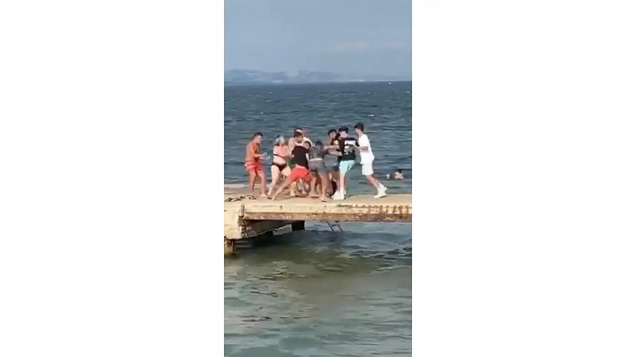 Sahil kenarında iki grup arasında temkme ve yumruklu kavga yaşandı.