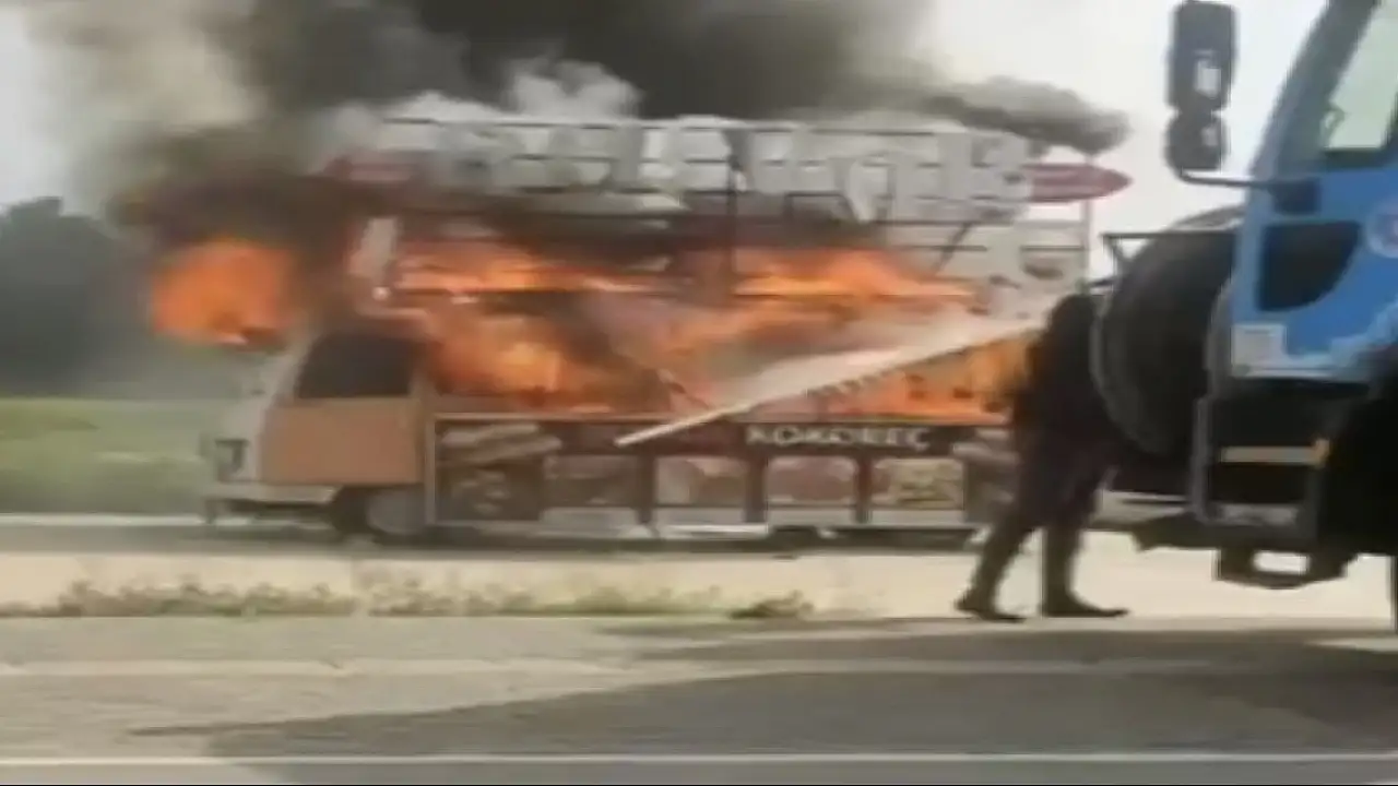 Kokoreç aracı alev alev yandı