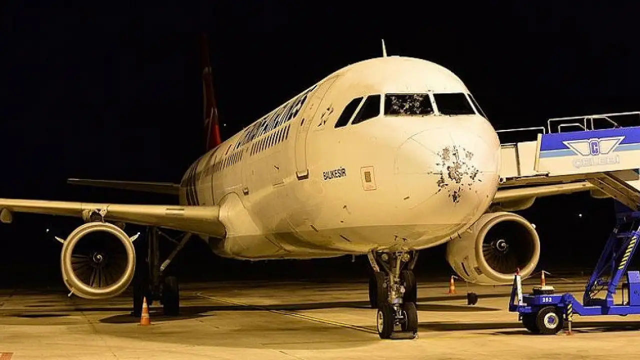 THY'nin Ercan Havaalanı'ndan kalkan ve Lefkoşa-İstanbul seferini yapan, "TK969" sefer sayılı Airbus A321 tipi "Balıkesir" isimli uçağın, dolu nedeniyle kokpit camı çatladı.