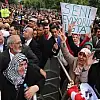 “Recep Tayyip Erdoğan”, “Dik Dur Eğilme Gurbetçiler Seninle” sloganları atanlardan bazılarının ellerindeki “Dik Dur Eğilme Ümmet Seninle, Türkiye Seninle, Sen Osmanlısın” yazılı dövizler de dikkat çekti.