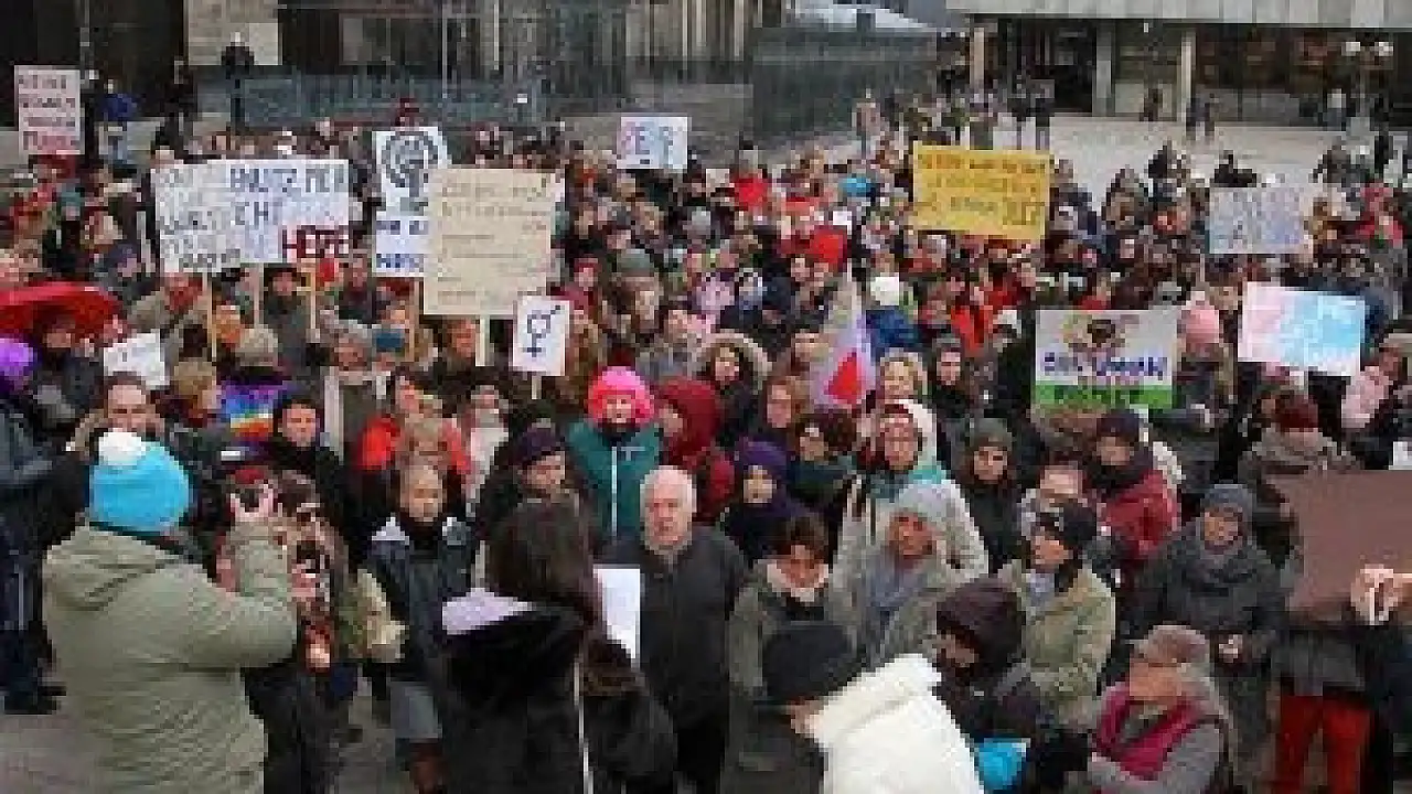 Çeşitli kadın dernekleri tarafından organize edilen gösteri, "Köln'de kadınlar yürüyor" sloganıyla, tarihi Köln Katedrali yanındaki Roncalliplatz Meydanı'nda gerçekleştirildi.