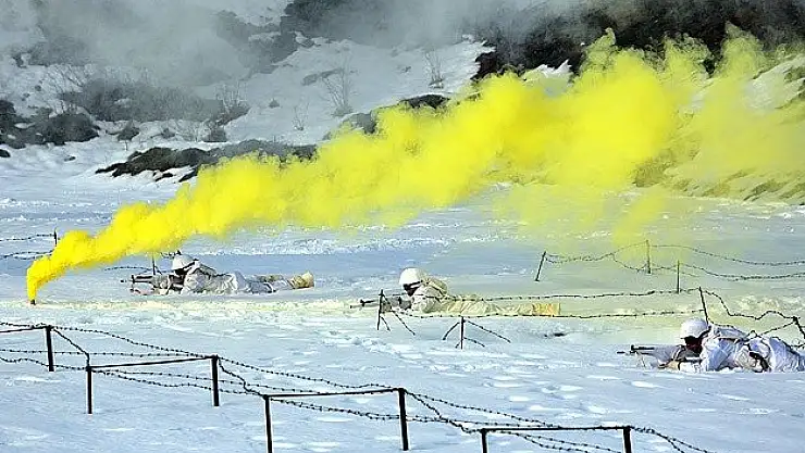 Zorlu kış şartlarında çalışmalara aralıksız devam eden komandolar, Türk milletine aidiyet duygusunun timsali "Komando Andı"nı söyleyerek eğitime başlıyor.