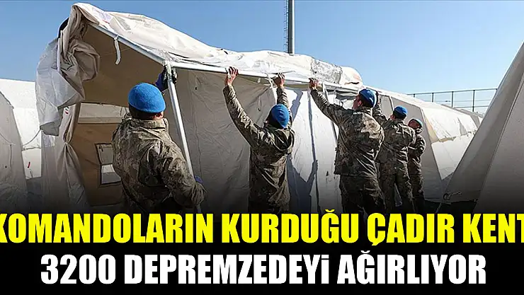 AFAD ve Kızılay'dan temin edilen 510 çadır, komandolar tarafından kısa sürede hazır hale getirilerek, vatandaşların hizmetine sunuldu. İçerisinde market, sahra hastanesi, giyim mağazası, mescit ile kütüphane bulunan çadır kentte şu anda 3 bin 200 depremzede barınıyor.