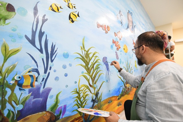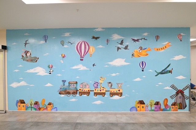Hastaneye gelen çocuklara moral vermek amacıyla; Çocuk Acil Servisi, triaj odaları, gözlem odaları ve çocuk acil polikliniklerinin duvarlarını çizgi film kahramanları ve çeşitli figürlerle yenileyen ekip, yapılan çizimleri hareketli ve daha dikkat çekici hale getirmek için duvarlara ahşap figürler monte etti.