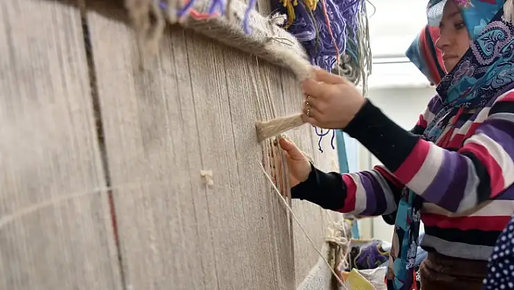 Hanımların doğal boyalarla hazırlanmış göz nuru ürünleri ilmek ilmek el emeğiyle dokuduğu atölyede üretilen halılar KOMEK Kooperatifi aracılığıyla dünyaya pazarlanıyor.