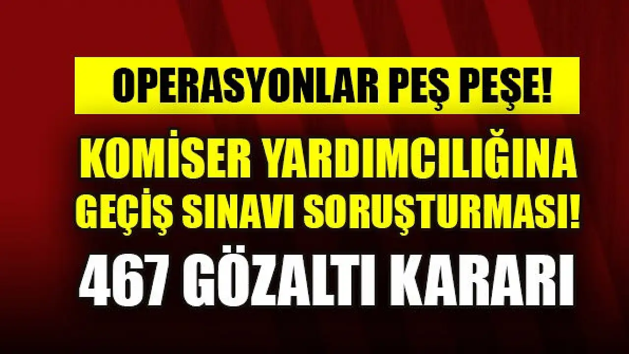 2009'daki komiser yardımcılığına geçiş sınavına yönelik FETÖ soruşturmasında, 67 ilde başlatılan operasyonda 467 şüpheli hakkında gözaltı kararı verildi.