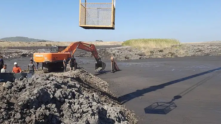 Soma'nın kırsal Dereköy Mahallesi'ndeki özel bir şirkete ait kömür ocağındaki şlam havuzunda bugün saat 06.00 sıralarında çökme meydana geldi. Bu sırada bölgede çalışma yapan kepçe operatörü İbrahim Demir, tonlarca çamurun altında kaldı. Bir kamyon şoförü ise çökmeyi son anda fark edip, araçtan atlayarak canını kurtardı.
