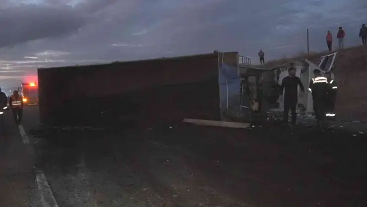 Kırıkkale'de kontrolden çıkan kömür tozu yüklü tırın devrildiği kazada 1 kişi yaralandı.