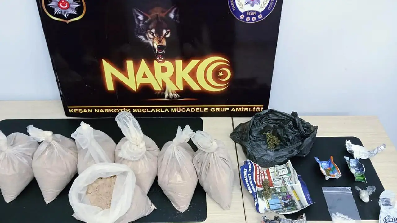 Edirne'nin Keşan ilçesinde bir evin kömürlüğünde yapılan aramada 6 kilo 400 gram eroin ele geçirildi, 2 kişi gözaltına alındı.