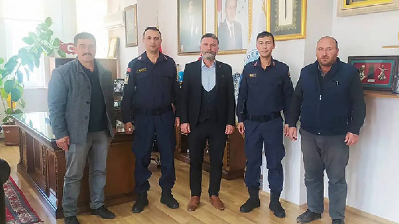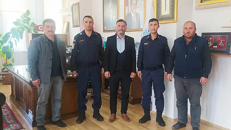 Derbent'e yeni atanan Derbent İlçe Jandarma Komutanı J.Asb.Bçvş. Ayhan Yılmaz ve J.Asb.Kd.Çvş. Murat Gülcü, Belediye Başkanı Hüseyin Ayten'i makamında ziyaret ettiler.