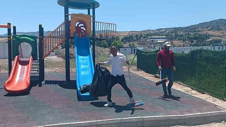 Adıyaman'ın Gölbaşı ilçesinde bulunan konteyner kentlerde bayram öncesi temizlik çalışmaları yapılıyor.