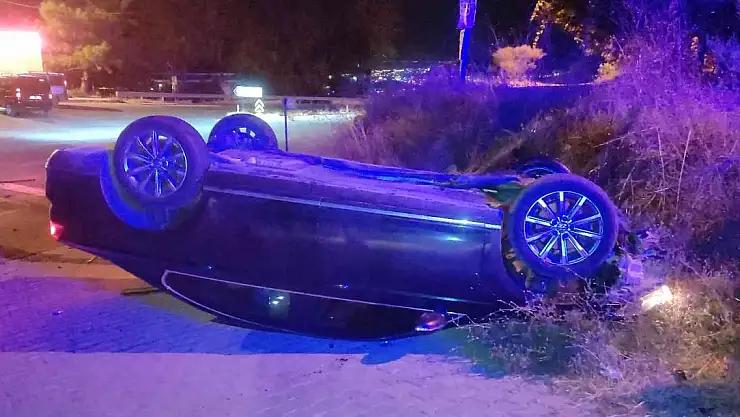Aydın'ın Kuşadası ilçesinde kontrolden çıkan bir otomobil karşı şeride geçerek takla attı.
