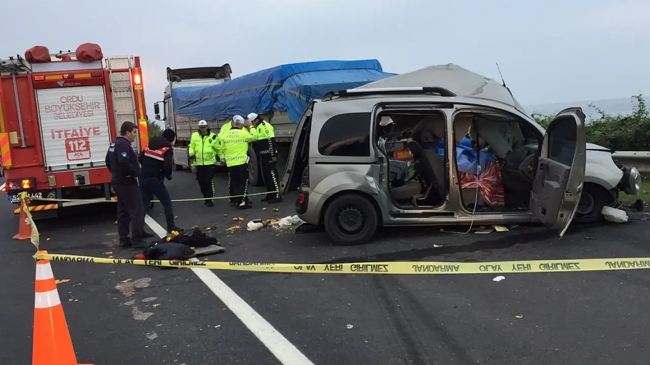 ORDU'nun Ünye ilçesinde kontrolden çıkarak park halindeki TIR'a arkadan çarpan hafif ticari araçtaki sürücü Ersan Demirbaş (53) hayatını kaybetti, 1'i çocuk 3 kişi, yaralandı.
