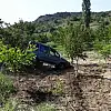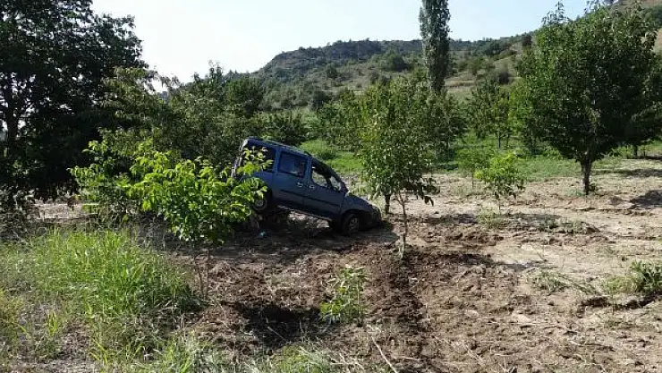 Bilecik'te seyir halinde kontrolden çıkan hafifi ticari araç kiraz bahçesine uçtu.