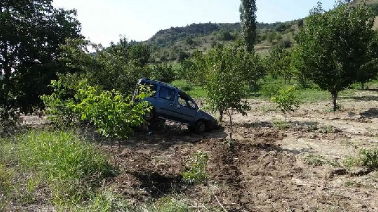 Kontrolden çıkan hafif ticari araç kiraz bahçesine uçtu