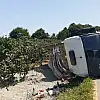 Kontrolden çıkan kamyon devrildi, sürücüsü yaralandı