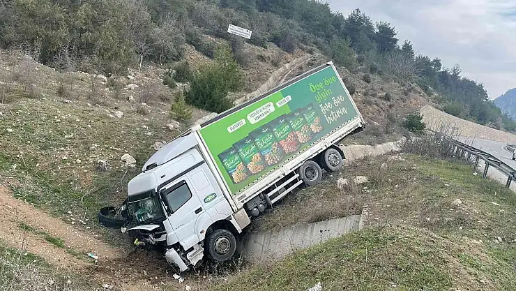 Bilecik'te seyir halinde iken kontrolden çıkan kamyon şarampolde devrilirken, sürücüsü hafif yaralandı.