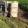 Kontrolden çıkan kamyon mısır tarlasına devrildi