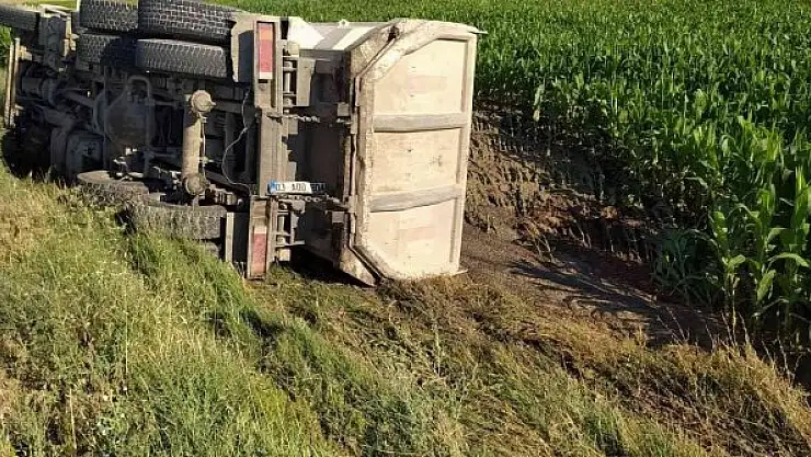 Afyonkarahisar'da sürücüsünün kontrolünden çıkan kamyon mısır tarlasına devrilirken, kazada ölen ya da yaralanan olmadı.