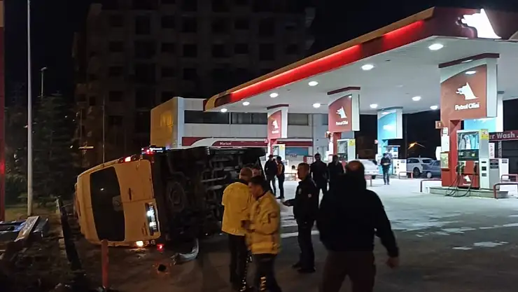 Kontrolden çıkan minibüs benzin istasyonuna daldı