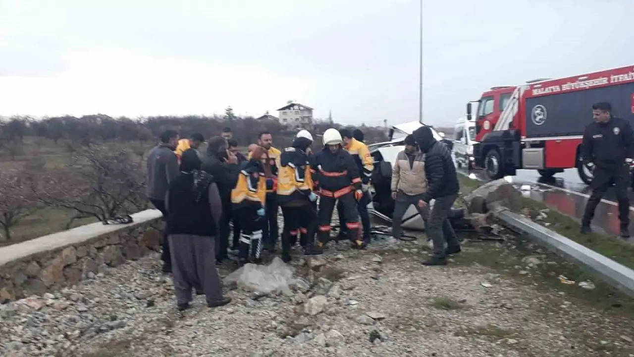 Malatya'da sürücüsünün kontrolünden çıkan otomobil, bariyerlere çarptıktan sonra yan yattı. Kazada 3 kişi yaralandı.