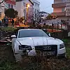Kontrolden çıkan otomobil çitleri aşıp evin bahçesine daldı