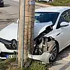 Kontrolden çıkan otomobil direğe girdi, sürücü yara almadan kurtuldu