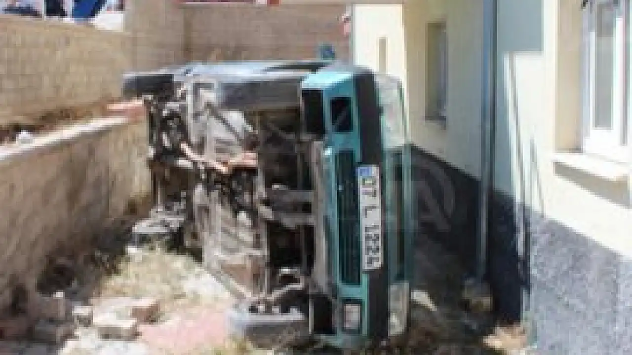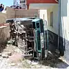 Kontrolden çıkan otomobil evin bahçesine düştü