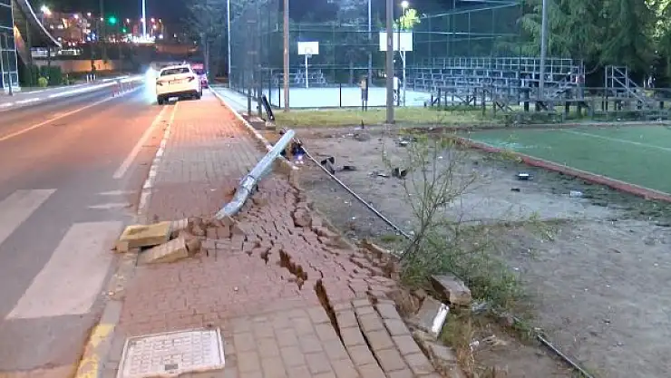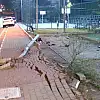 KÜÇÜKÇEKMECE'de kontrolden çıkan otomobil, trafik ışıklarına çarptıktan sonra halı sahaya girdi.
