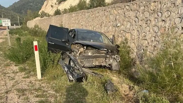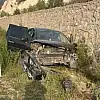 Kontrolden çıkan otomobil istinat duvarına çarparak durabildi