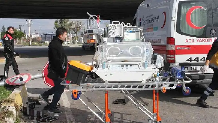Antalya'da direksiyon hakimiyetini kaybeden araç sürücüsü önce bir araca ardında da refüje çarparak takla attı. Kazada araç içerisinde bulunan sürücü ağır yaralandı. Yaralıya ilk müdahale bir adrese bebek almaya giden sağlık çalışanları tarafından küvöz indirilerek yapıldı. Kaza sonrası olay yeri ise adeta savaş alanına döndü. Kazayı yara almadan atlatan bir kişi "Füze gibi geldi. Çarptı, uçtu" dedi.