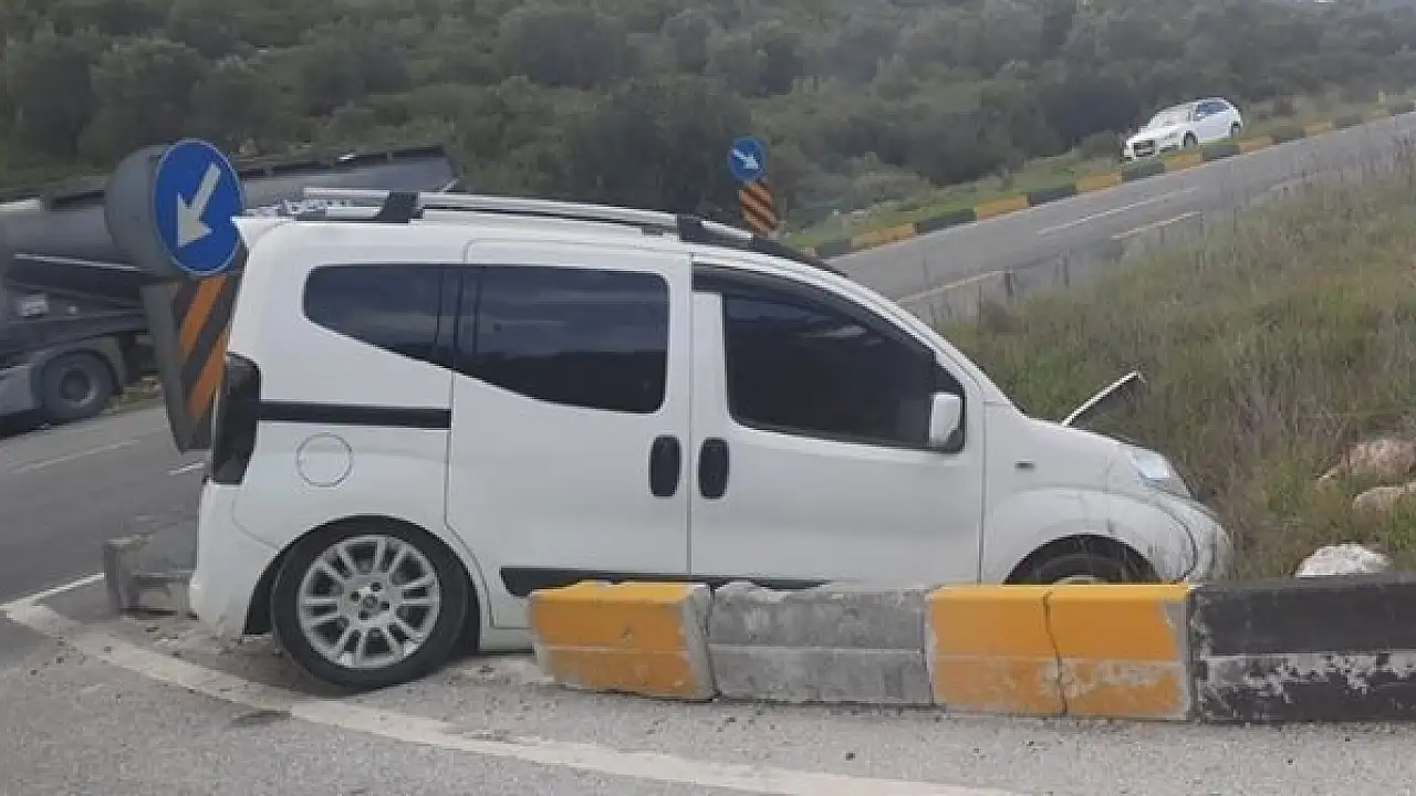 Muğla'nın Milas ilçesinde seyir halindeyken kontrolden çıkan bir otomobil refüje çıkarak durabildi.
