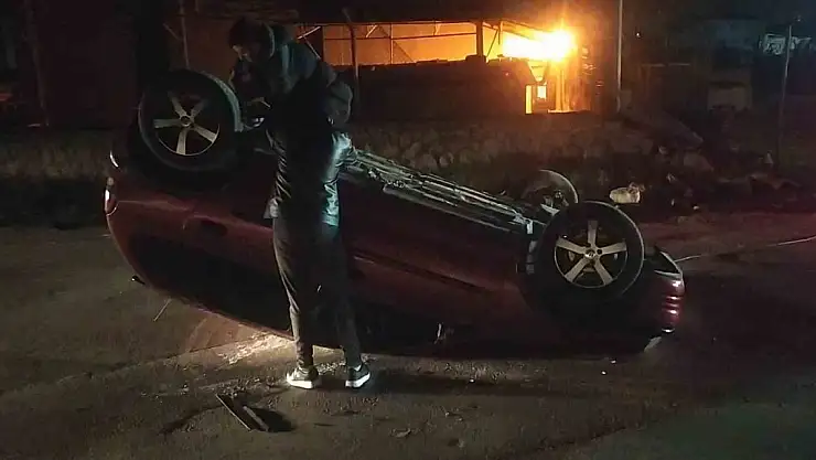 Kontrolden çıkan otomobil takla attı, sürücü ölümden döndü