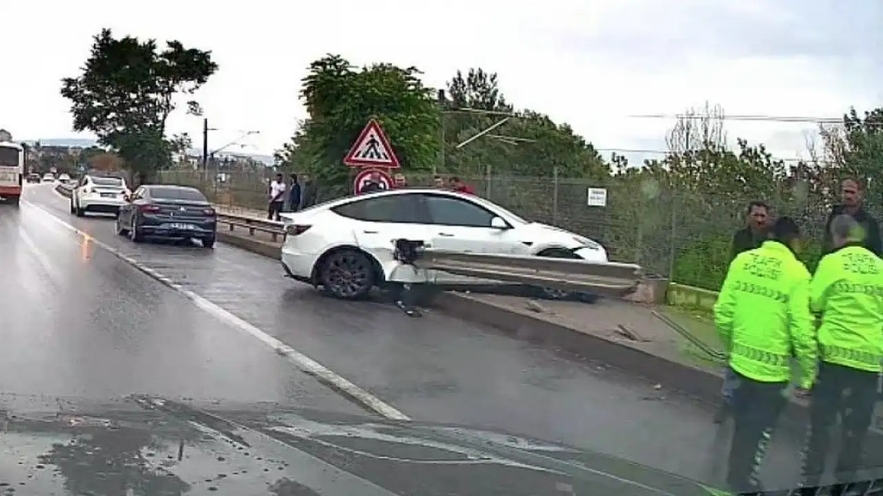 Edinilen bilgilere göre; 26 UD 110 plakalı Tesla marka cip, sağanak yağış sebebiyle ıslak zeminde seyir halindeyken kontrolden çıktı. Sürücüsünün direksiyon hakimiyetini kaybettiği araç, yolun kenarındaki bariyere saplandı. Çarpışmanın etkisiyle bariyer aracın bir tarafından girdi, diğer tarafından çıktı. İhbar üzerine bölgeye polis ekipleri sevk edildi. Maddi hasarın oluştuğu kazayla ilgili inceleme başlatıldı.