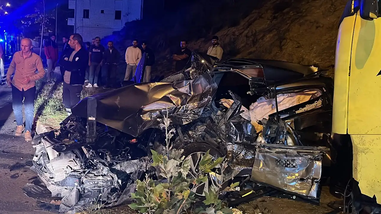 Kontrolden çıkan TIR refüjü aşıp, çarptığı otomobili hurdaya çevirdi: 1 ölü