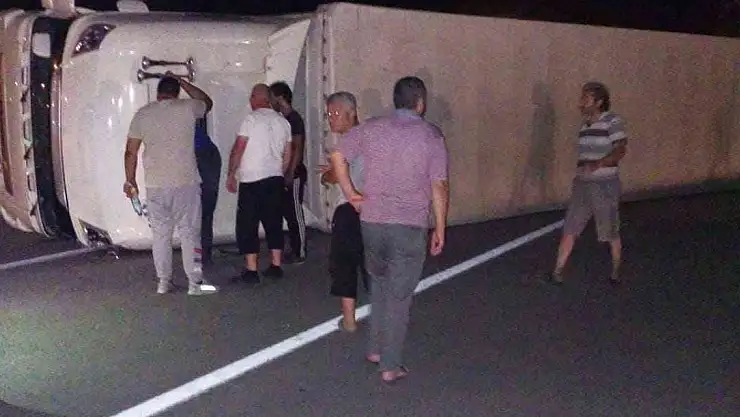 Afyonkarahisar'da kontrolden çıkan tır yol ortasına devrildi. Kaza esnasında yolun boş olması ise yaşanabilecek bir facianın önüne geçti.