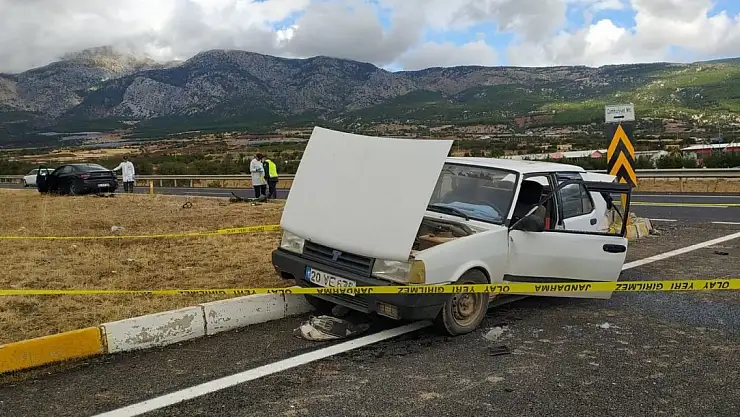 Kaza, Denizli'nin Serinhisar ilçesi Mehmetçikler mevkiinde meydana geldi. Edinilen bilgiye göre, Denizli Antalya karayolunda kontrolsüz kavşaktan dönmek isteyen Tofaş marka otomobile arkasından gelen başka bir otomobil çarptı. Çapmanın etkisiyle iki araçta kontrolden çıkarak refüje çıktı. Kazayı gören vatandaşların ihbarı üzerine bölgeye sağlık ve polis ekipleri sevk edildi.