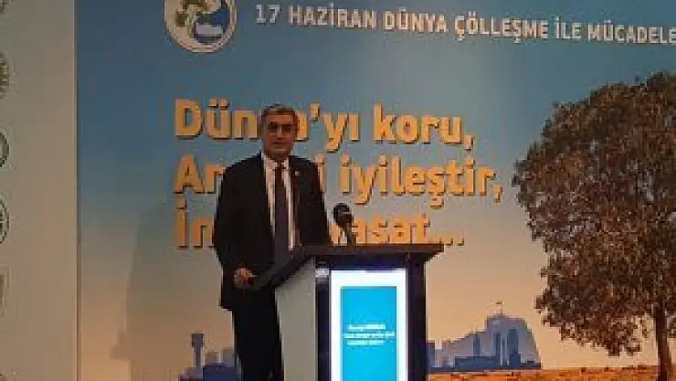 Dünya Çölleşme ile Mücadele Günü Dolayısıyla DSİ Genel Müdürlüğü Konferans Salonu’nda düzenlenen programa Orman ve Su İşleri Bakanı Veysel Eroğlu, Gıda Tarım ve Hayvancılık Bakan Yardımcısı Mehmet Daniş, TBMM Tarım Orman ve Köyişleri Komisyonu Başkanı Recep Konuk, TBMM Çevre Komisyonu Başkanı Cihan Pektaş, Orman ve Su İşleri Bakanlığı Müsteşarı Akif Özkaldı, Türkiye Ziraat Odaları Birliği Genel Başkanı Şemsi Bayraktar, Bakanlık Bürokratları ve STK temsilcileri de katıldı.