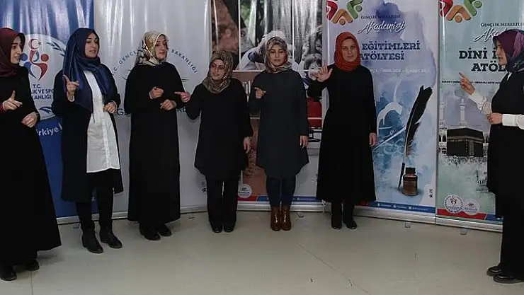 Erzincan'da düzenlenen kursa katılan bir grup genç, işitme engellilere işaret diliyle Hazreti Muhammed'in hayatını öğretecek.