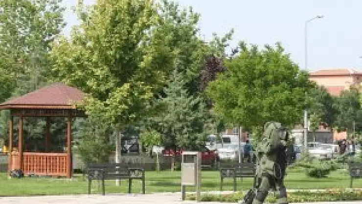 Adliye bahçesindeki kameriyelerin yanında bulunan valizi fark eden vatandaşlar polisi aradı.