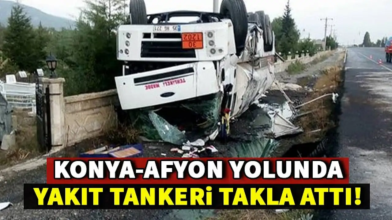 Konya-Afyonkarahisar yolunda bir akaryakıt tankeri yoldan çıkarak takla attı. Kazada 1 kişi yaralanırken, yüzlerce litre akaryakıt ise devrilen tankerden yola aktı.