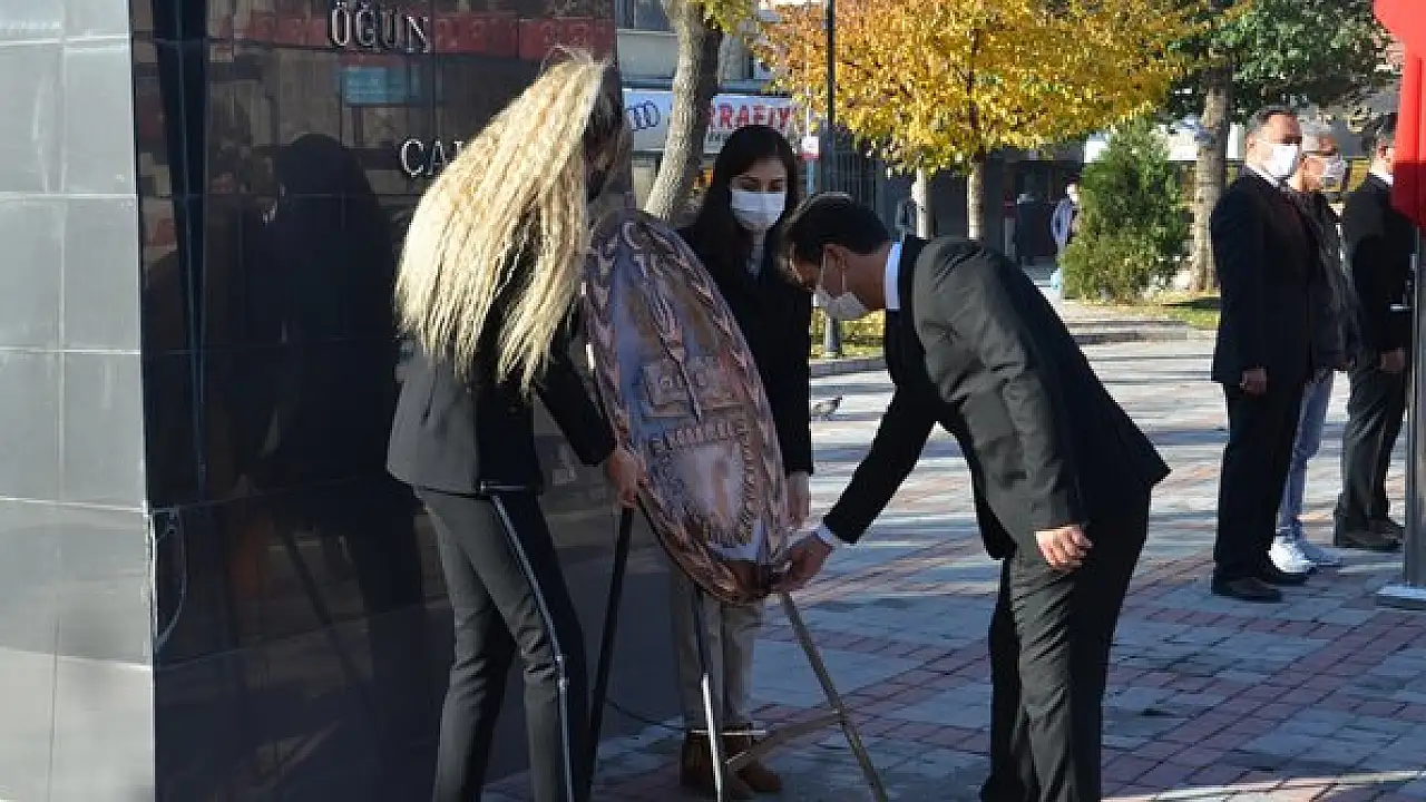 Karaman'da Cumhuriyet Parkı'ndaki törende, İl Milli Eğitim Müdürü Mehmet Çalışkan, Atatürk Anıtı'na çelenk sundu.