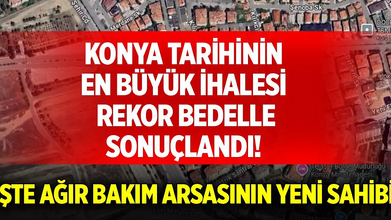 Konya'nın kent merkezindeki en stratejik konuma sahip arazilerinden biri olan eski Ağır Bakım Fabrika Alanı kapalı teklif usulüyle ihaleye çıktı. Havzan bölgesindeki şehrin en değerli arsasında, 3 milyar 502 milyon TL gibi rekor bir ücretle ihaleyi kazanan isim belli oldu.