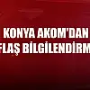 Konya AKOM'dan flaş bilgilendirme