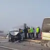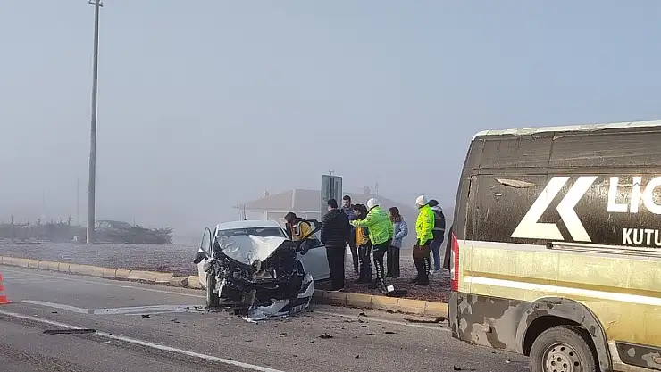 Konya-Ankara kara yolunda etkili olan sis nedeniyle, Ömeranlı Kavşağında 06 EAA 870 plakalı otomobil, kamyonete arkadan çarptı.
