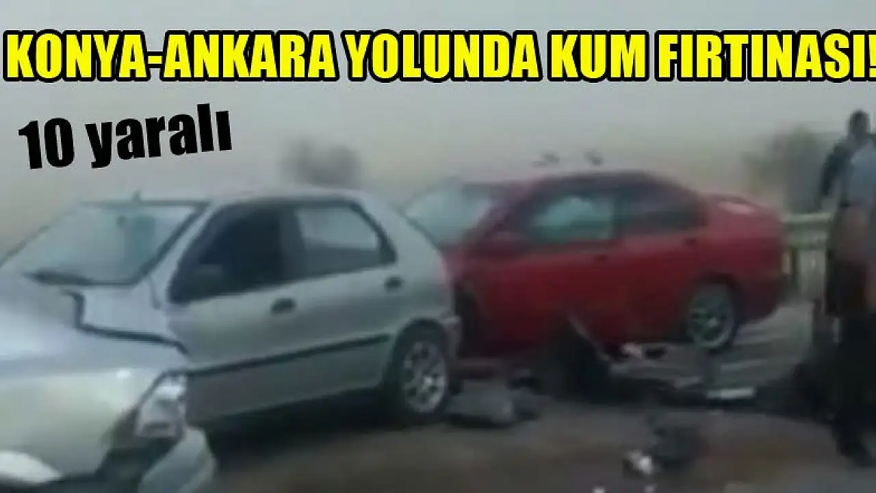 Konya-Ankara kara yolunun 70'inci kilometresinde kum fırtınası nedeniyle yaklaşık 20 aracın karıştığı zincirleme kazada ilk belirlemelere göre 10 kişi yaralandı.